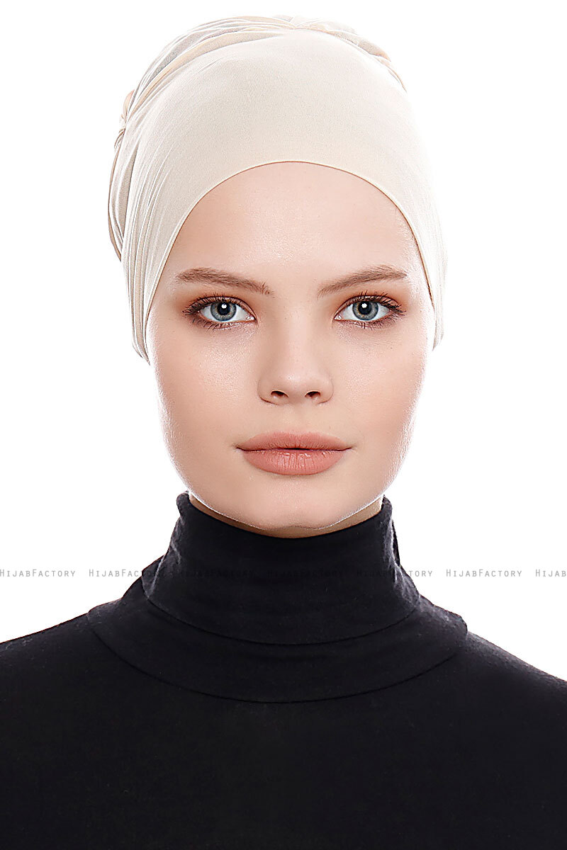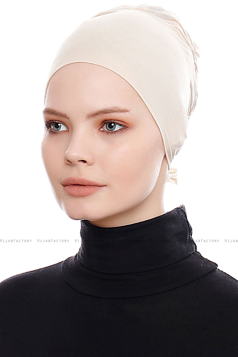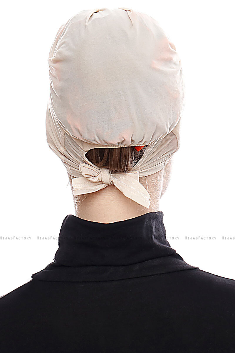 Belgin - Beige Parizien Untertuch Aus Ecardin.Dieser Unterschal ist größer. Es ist für größere Köpfe gemacht.