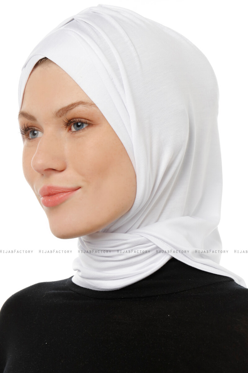 Isra Cross - Weiß Praktisch Fertig Viskos Hijab Aus Ecardin In der Türkei.