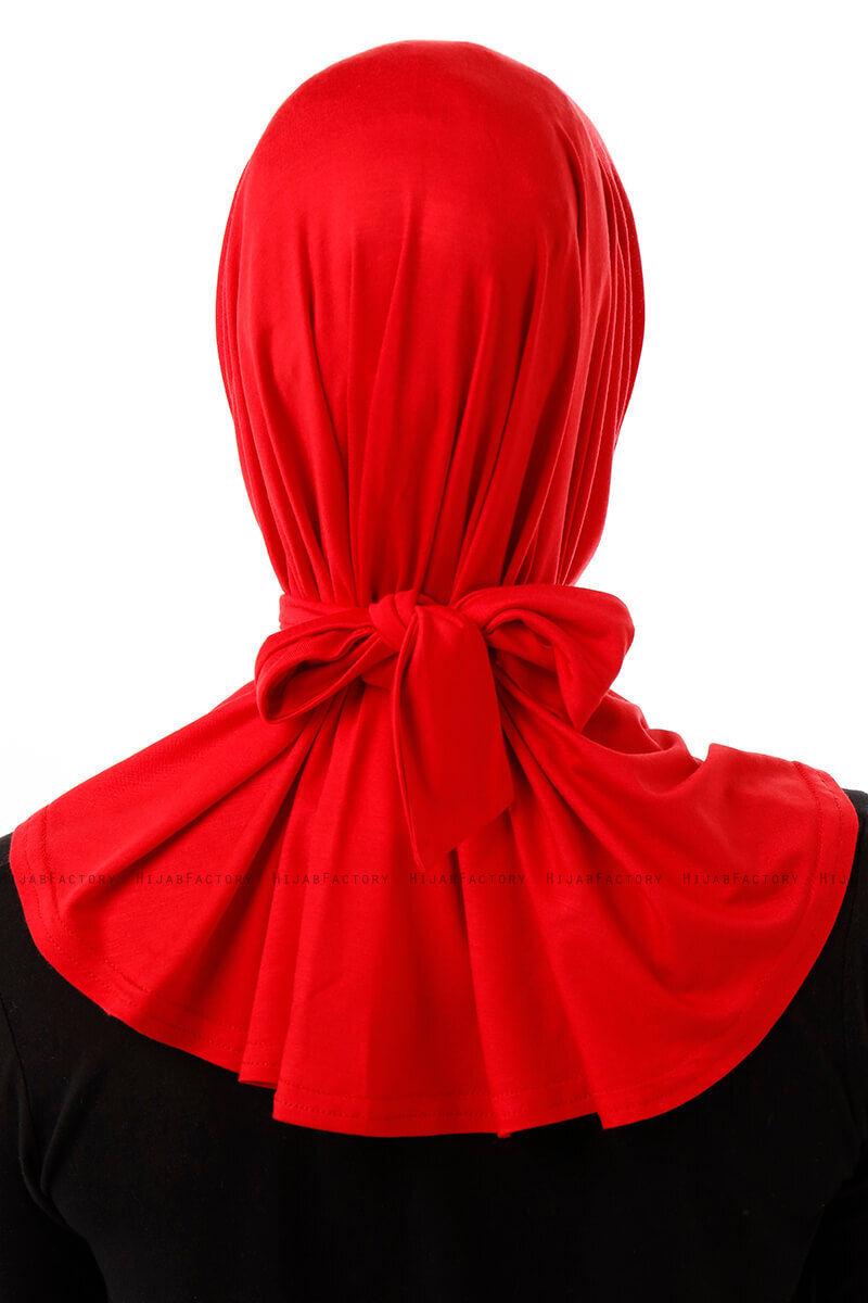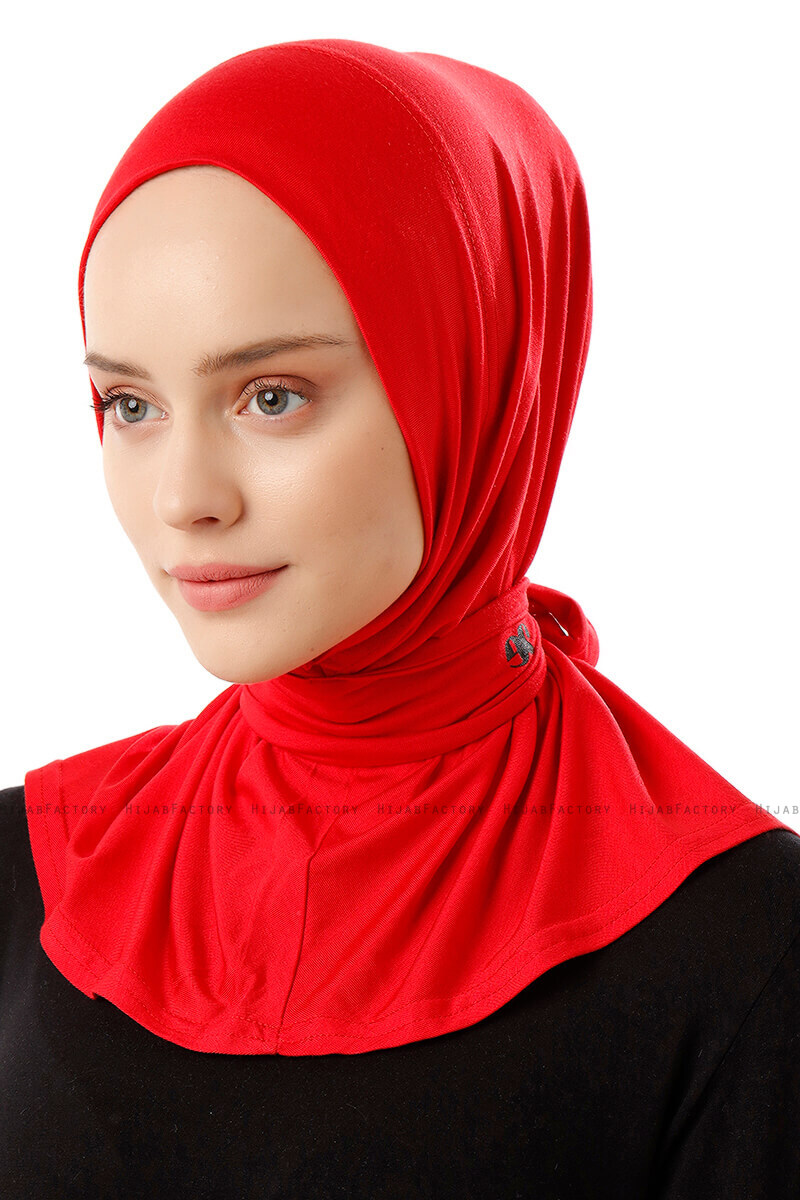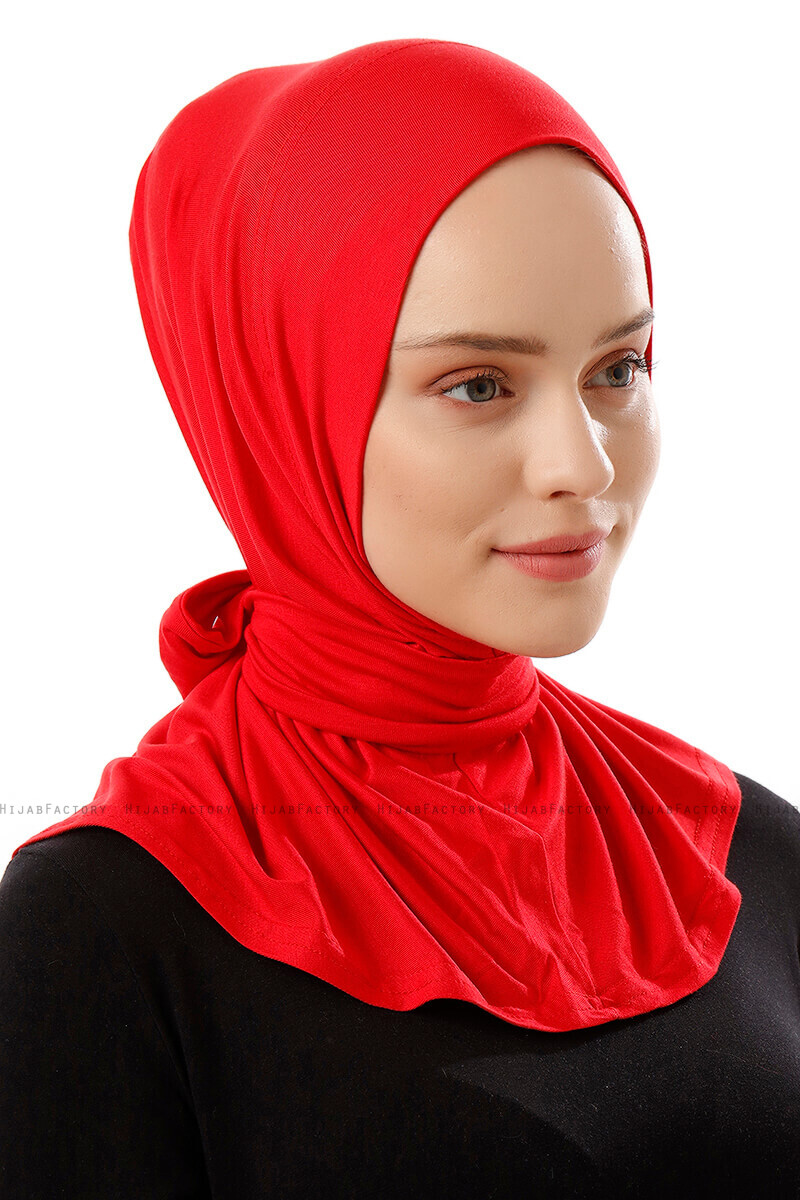 Sportif Plain - Rot Praktisch Fertig Viskos Hijab Aus Ecardin In der Türkei.