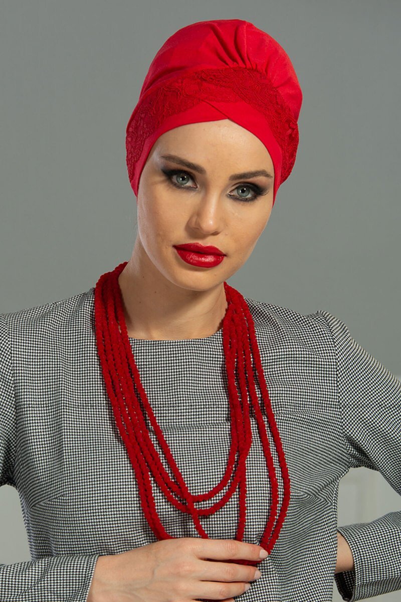 Molly - Rot Spitze Baumwolle Turban Aus Ayse Turban.