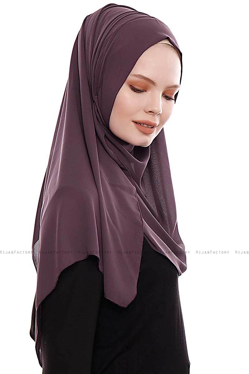 Yara - Lila Praktisch Fertig One-Piece Crepe Hijab Aus Ecardin.