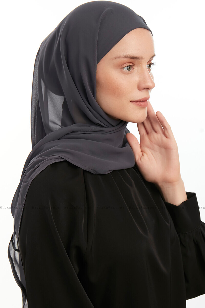 Sahar - Anthrazit Praktisch Fertig One-Piece Chiffon Hijab Aus Ecardin.Einteiliger Chiffon-Hijab. Mit Untertuch aus Viskose.